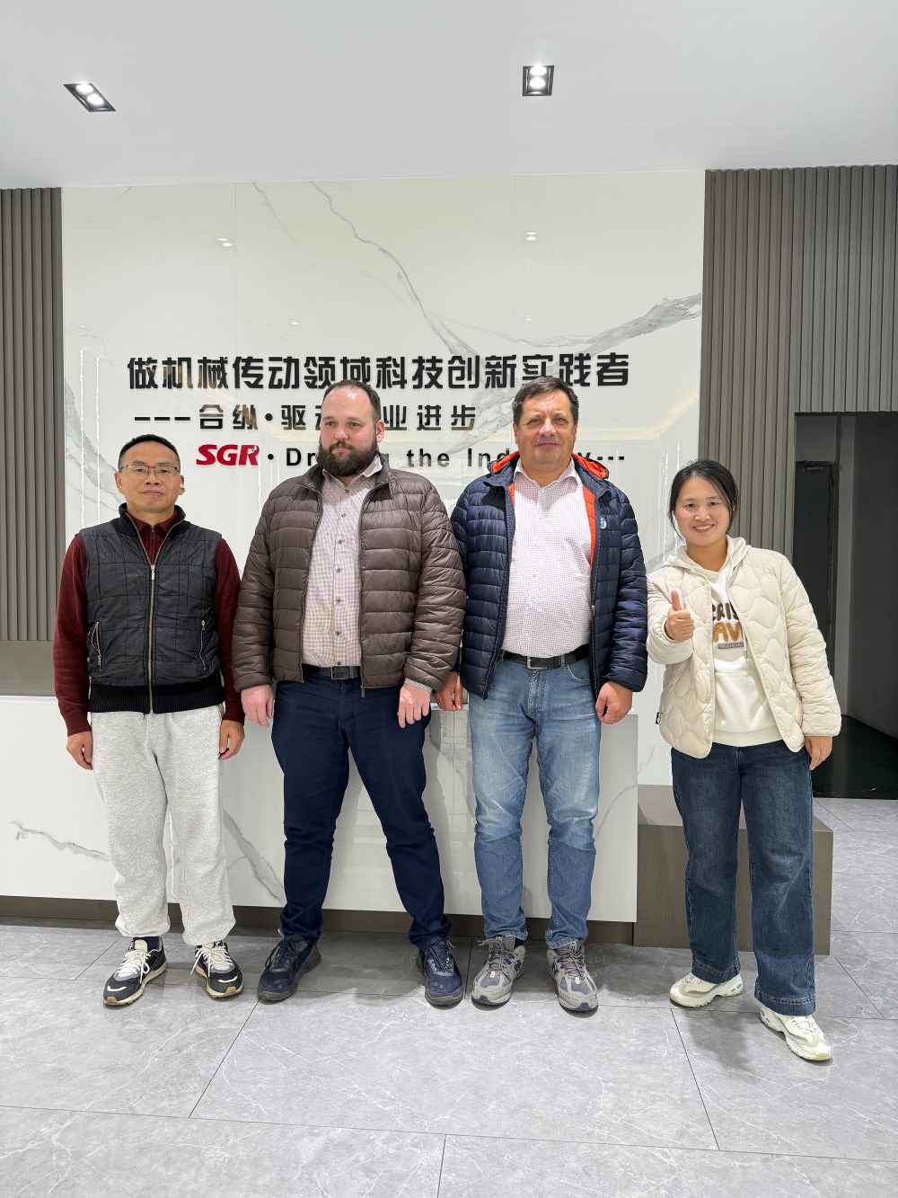 Le linn na cuairte, chuir an bainisteoir gnó thar lear agus innealtóirí teicniúla SGR fáilte mhór roimh na custaiméirí thar lear agus chuaigh sé leo le linn an turais ar cheardlann táirgthe giarbhosca nua-aimseartha monaróir giarbhosca SGR, ionad T&F, agus ionad tástála táirgí.